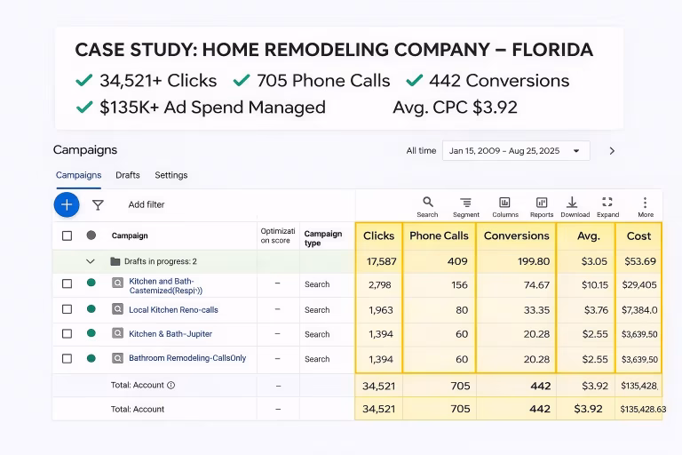 “We went from inconsistent inquiries to steady, high-quality remodeling leads and appointments. Google Ads finally became a reliable growth channel for our business.”
